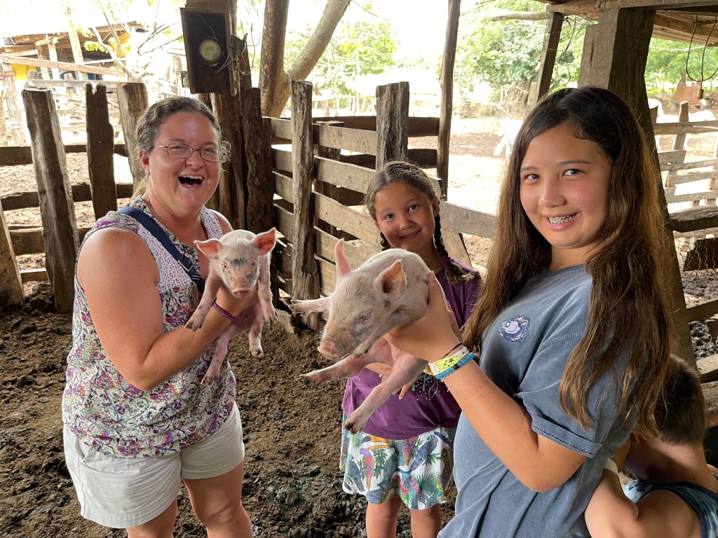 Our excursion of the weekend was to Finca las Garzas. There, the gracious host provides a farm tour, as a authentic cultural experience! How authentic? I got pooped on by a baby pig! That’s farm life!